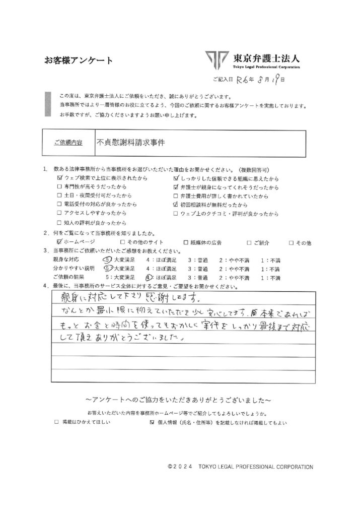 ご依頼の結果:ほぼ満足