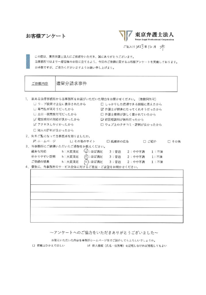 遺留分請求事件に関するお客様の声